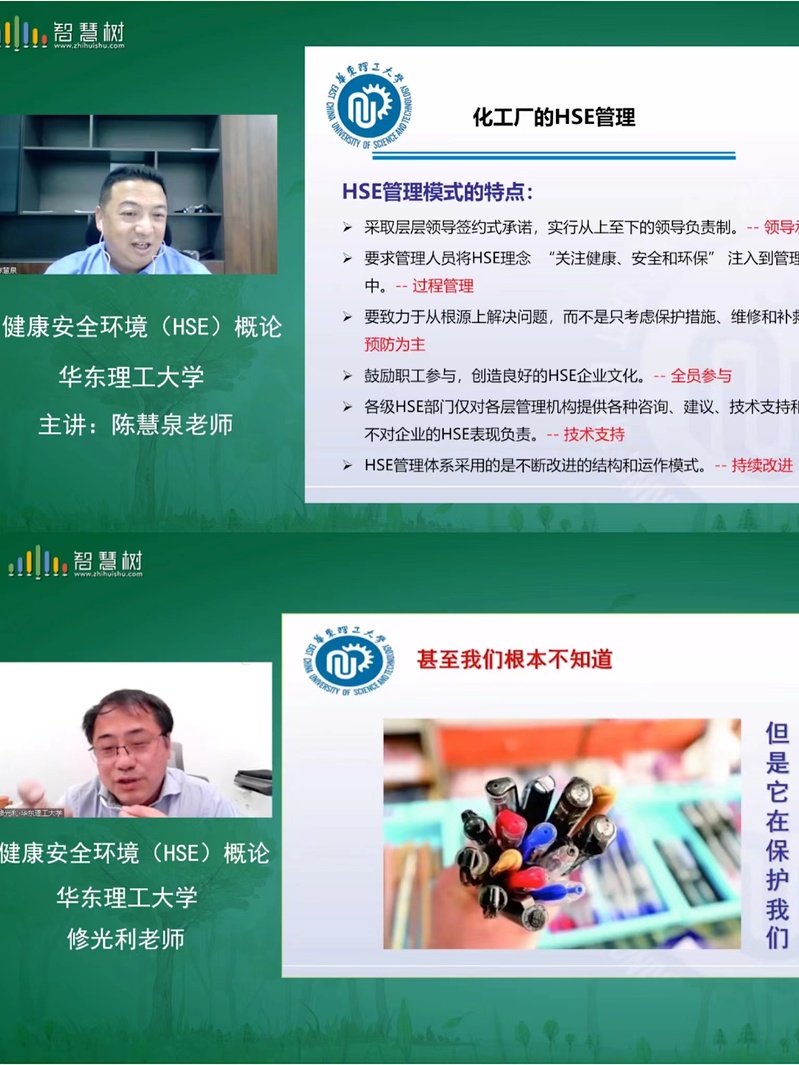 据悉,《企业EHS风险管理基础》是国家精品在线开放课程,437bwin必赢国际官网EHS校友会中30多位校友作为授课讲师,在智慧树东西部共享平台上已经累计开课10个学期,服务了全国20多个省市累计112所学校,至今累计选课2.24万人次。石河子大学是437bwin必赢国际官网对口支援的高校,该校化工学科已经成为“双一流”学科。“同步课堂”是石河子大学与437bwin必赢国际官网联合推进的一项重要教学改革。本次同步课堂通过437bwin必赢国际官网EHS校友会组织了来自在陶氏、石大胜华、诺力昂、GBK、工智道、安波福、贝科涂料、庄臣等企业工作的校友集体备课,后续将陆续推出产品安全、事故应急等同步课堂。“这种校企合作、融理论于实践之中的学习方式,是典型的‘产教融合’的培养模式之一,体现了华理校友的力量,有助于培养学生自主学习探究和工程实践的能力。”修光利说。