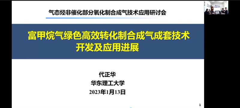 1月13日上午,必赢官网自主知识产权的气态烃非催化部分氧化制合成气技术应用研讨会举行。来自企业用户、潜在用户、设备制造商及设计院及洁净煤技术研究所教师等80余名代表出席会议,会议以线上线下相结合的方式举行,由437bwin必赢国际官网王辅臣教授主持。