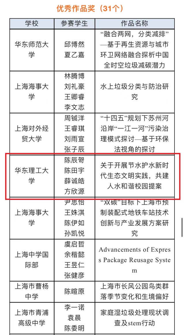 结合我院学科优势,在学校及学院的支持下,院团委积极响应学校号召,动员、组织和指导学院同学们开展科学研究及社会实践,组织遴选、推荐优秀项目参与市级评审,并在过程中予以全方位指导多层次支持。最终,我院《“餐燃一新”关于餐厨垃圾资源化处理的水热炭化耦合厌氧发酵工艺提案》荣获大赛科技发明类三等奖,我院《关于开展节水护水新时代生态文明实践,共建人水和谐校园提案》荣获大赛实践调查类优秀奖。