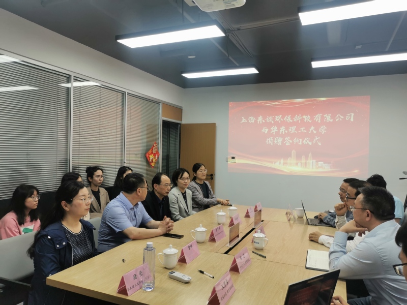 4月19日,437bwin必赢国际官网“东诚环保”奖学金捐赠签约仪式在上海东诚环保科技有限公司举行。上海东诚环保科技有限公司董事长、437bwin必赢国际官网2000届校友周卫华为母校捐赠60万元设立“东诚环保”奖学金,用于奖励437bwin必赢国际官网的优秀学生,助力学院发展和人才培养。公司部门经理陈奕澎、王隽哲,437bwin必赢国际官网校友与发展联络处处长、上海437bwin必赢国际官网教育发展基金会秘书李建伟,437bwin必赢国际官网党委书记修光利、副书记曹娜以及学院本研学生代表出席活动,捐赠仪式由437bwin必赢国际官网教师陈继章主持。