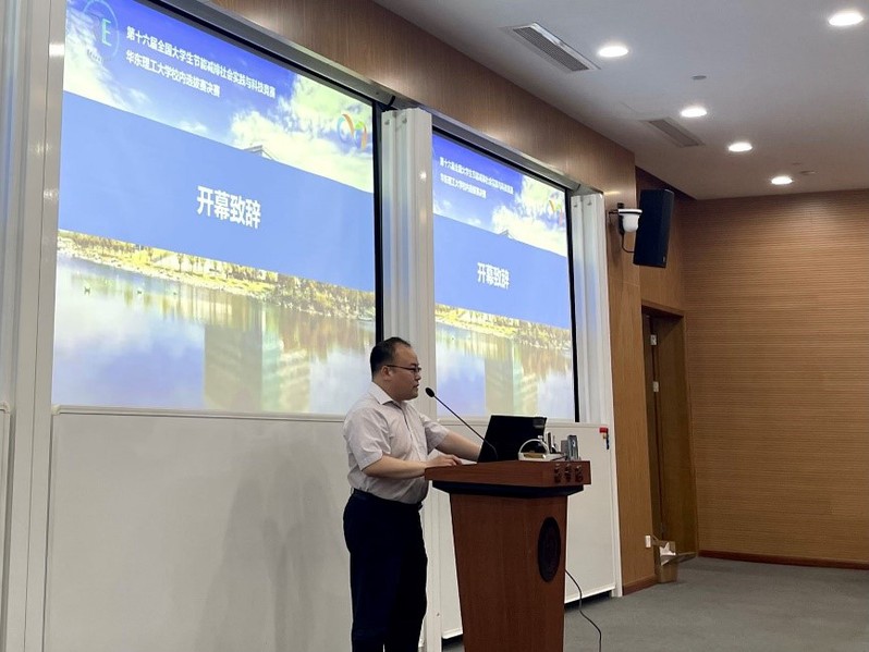 司忠业致辞时对评委专家的到来表示热烈欢迎,对华理学子提出殷切期望,希望广大师生以研促创,以赛促学,关注能源环境与绿色发展,在实践实战中提高创新精神与创业能力。