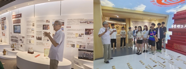在高晋生老师的带领下,师生井然有序地进入校史馆进行参观,共同回顾了学校70多年的发展历程与办学成就,通过珍贵的文史资料和照片图片,结合高老师的亲身经历与生动讲解,同学们对学校光辉发展历史有了更加深刻的了解,全面认识到学校人才培养观念及教学科研成就,深入理解了华理“励志明德 勤奋求实”校训的内涵。