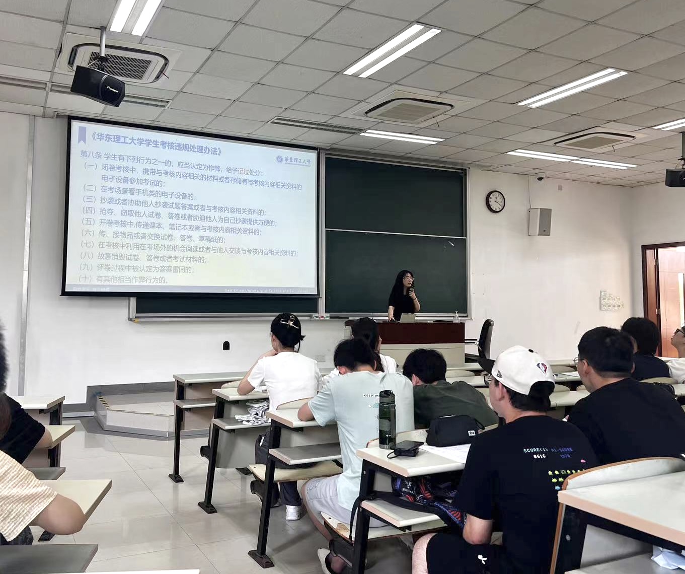 会上,年级辅导员带领全体学生共同学习了《高等学校学生行为准则》、《国家教育考试违规处理办法》、《437bwin必赢国际官网学生考核违规处理办法》以及《437bwin必赢国际官网学生违纪处分规定》等相关高教法规及学校规章制度,并结合具体相关案例与数据进行分析,要求全体学生遵守学术规范、坚守考试诚信、摒弃不端行为,努力成为诚实守信的践行者和良好学术风气的维护者。