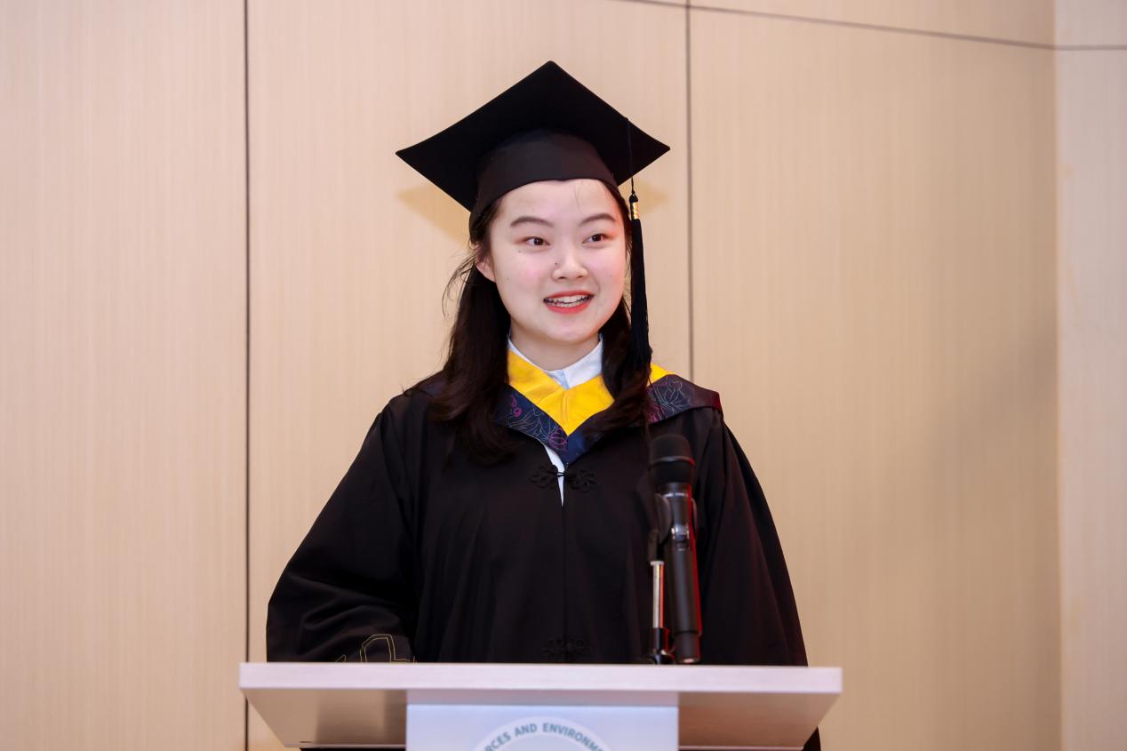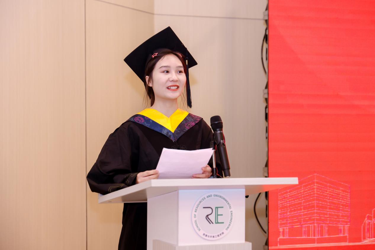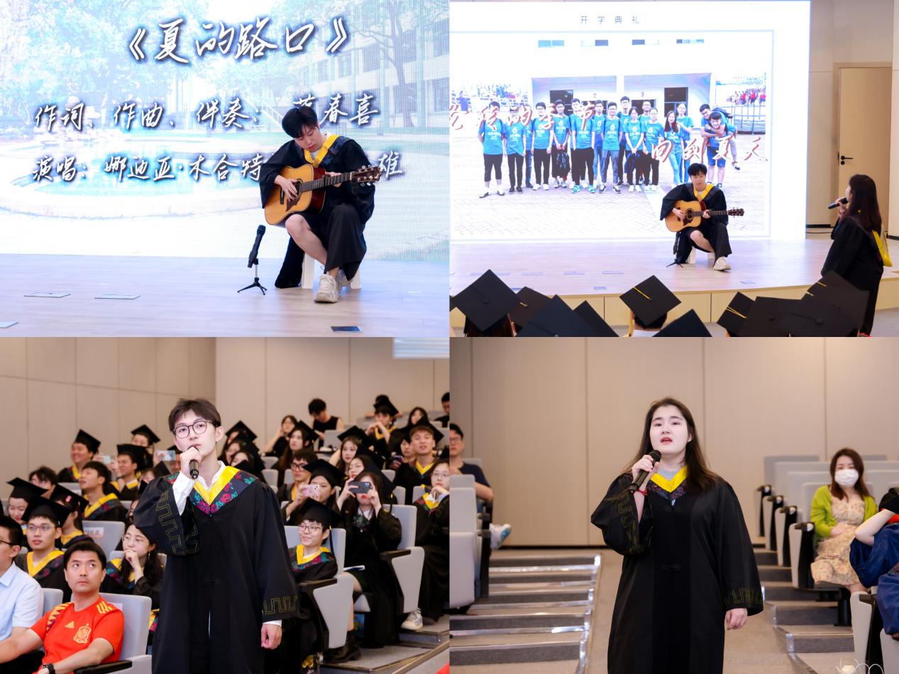 2022届毕业生代表为师长父母献上鲜花表达感恩之情。学院领导共同为2022届毕业生拨穗正冠。校友代表黄雨荻发言,他对父母的养育和母校的培养表示感谢,并向在座师生汇报了自己毕业后的发展和感悟。汪华林院长为毕业生赠送了专属毕业礼物“良言吉语”明信片。2022届毕业生田文艳、李莹分享了入学之初《写给四年后的自己》,与五年前的自己进行了一场心灵对话。本科生蒋春喜、娜迪亚,研究生凌志雄为毕业生献歌,表达了对学长的祝福。