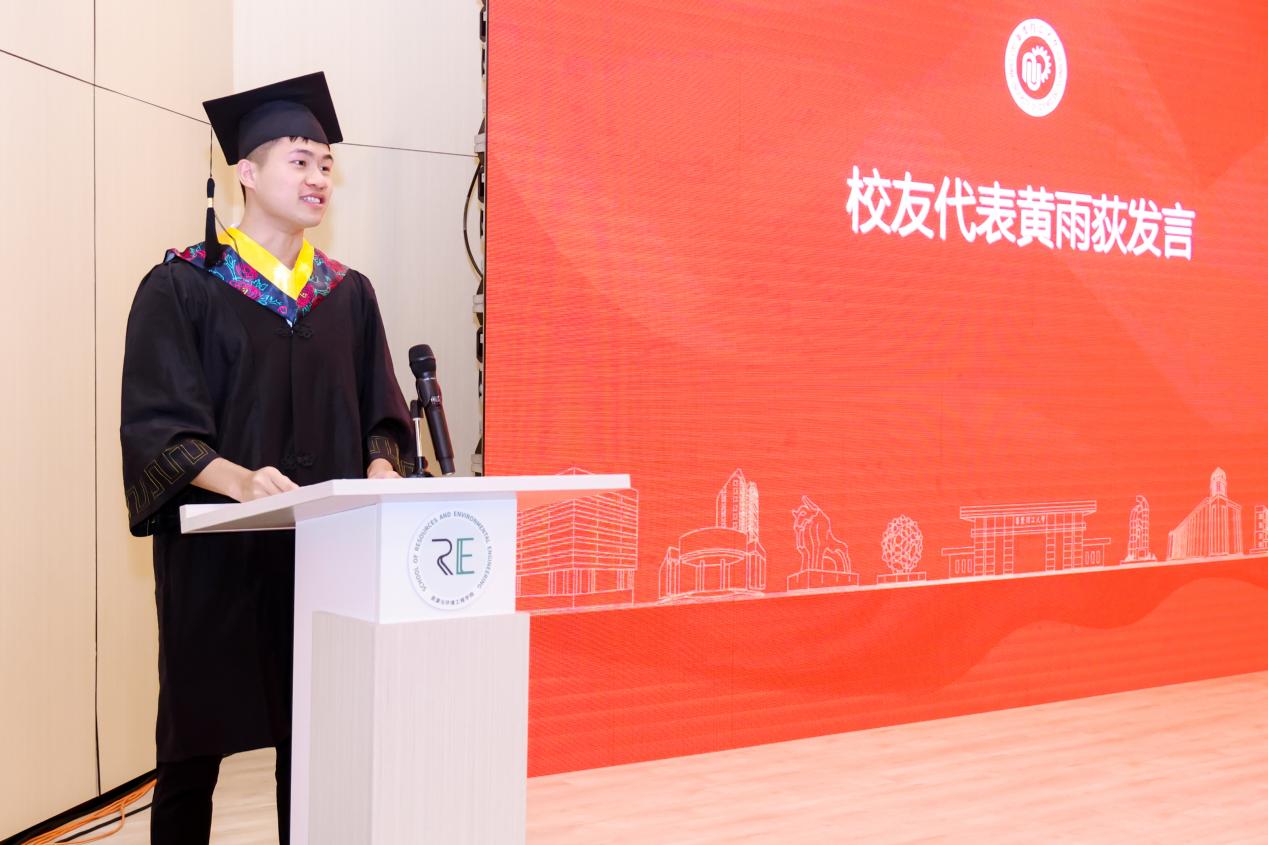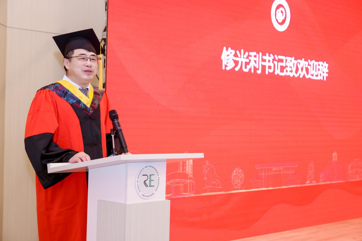 典礼在雄壮的国歌声中拉开帷幕,学院党委书记修光利致欢迎辞。他对2022届毕业生奔赴一年前的约定回校参加线下毕业典礼表示热烈欢迎。他希望每一位资环学子秉承“勤奋求实,励志明德”的校训,学会合作与互助,勇挑强国重任,把个人发展融入祖国建设的洪流之中,在服务国家社会发展中,争做堪当民族复兴大任的时代新人。