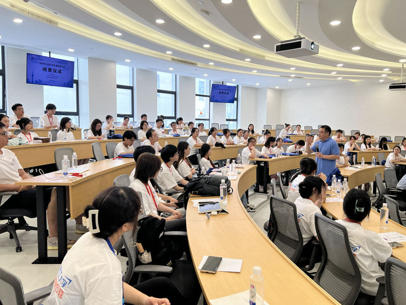 汪华林代表学院对参加此次夏令营活动的全体营员表示热烈欢迎,今年夏令营恢复线下举行,他鼓励同学们到美丽的华理校园走一走,看一看,想一想,建议营员借此次难得的机会,多听学术报告、多实地考察,形成1+1+1>3的效应。汪院长对营员们的寄语得到了现场同学们的热烈反馈。