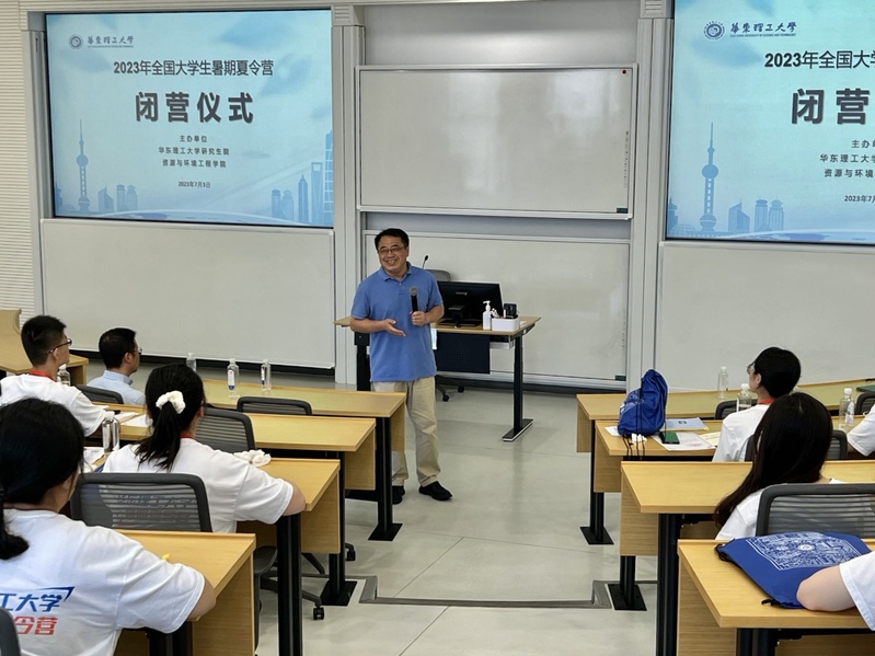 7月3日,本次夏令营闭营仪式在实验19楼A101会议室举行,437bwin必赢国际官网党委书记修光利出席了闭营仪式,并与营员们进行了互动交流。修光利就437bwin必赢国际官网各学科未来发展方向、学院党建特色、专业学位研究生实习实践、研究生教育国际化等学院面向未来的一些重点方向进行了介绍,他与大家交流了自己对上海这座城市的印象和理解、对建设教育强国和推进中国式现代化的认识。他强调437bwin必赢国际官网学科遇到了最好的发展机遇,并盛情邀请营员们来到上海,报考437bwin必赢国际官网,携手为我国生态环境保护与建设工作而贡献智慧。闭营仪式上,学院领导及教授代表为营员们颁发了夏令营结业证书。