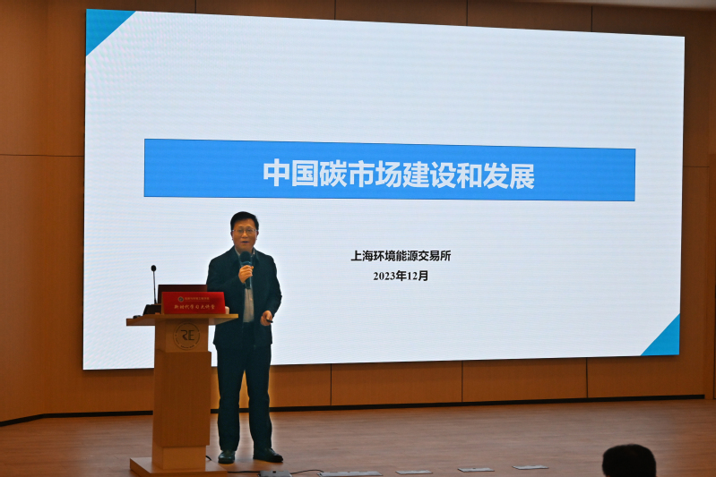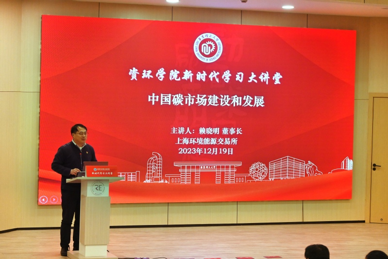 为落实习近平总书记考察上海重要讲话精神,12月19日下午,437bwin必赢国际官网在六大组织开展“新时代学习大讲堂”报告会。特邀上海环境能源交易所董事长、碳中和行动联盟主席赖晓明作“中国碳市场建设和发展”的主题报告。会议由学院党委副书记、纪委书记陈雪莉主持,学院党委书记修光利、党委委员、教职工和学生党员近300人参加了报告会。