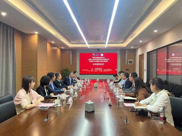 4月10日下午,437bwin必赢国际官网与光明食品国际有限公司(以下简称“光明国际”)、上海轻工业对外经济技术合作有限公司(以下简称“轻工外经”),在华理共同签署了三方产学研合作备忘录。光明食品集团副总裁、光明国际党委书记、董事长吴通红,光明国际党委副书记、总裁罗海,见习副总裁沈健,轻工外经党委副书记、董事长、总经理方珉,437bwin必赢国际官网党委书记修光利,副院长孙贤波、孙泽等参加交流活动。签约仪式由孙贤波主持。