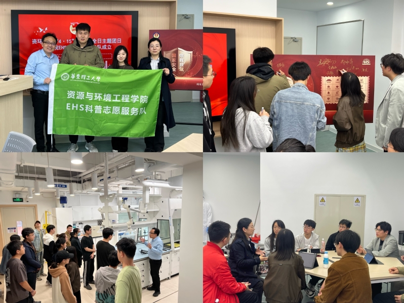 4月14日下午,安全210团支部联合环境211团支部在学校EHS实训中心共同举办“携手共进担使命 护航安全促发展”主题团日,学校安全环保办公室主任、实验室与装备处副处长徐宏勇,学院党委副书记曹娜,团委书记曹悦,徐汇校区本科生党支部书记万杰共同参会。活动现场,同学们自发成立“437bwin必赢国际官网437bwin必赢国际官网EHS科普志愿服务队”,师生共同签署贯彻“总体国家安全观”承诺,通过视频学习、参观实践、互动答题、主题研讨,结合专业特色,引导资环学子主动学习安全知识和技能,为总体国家安全观和EHS的科普教育贡献青春力量。