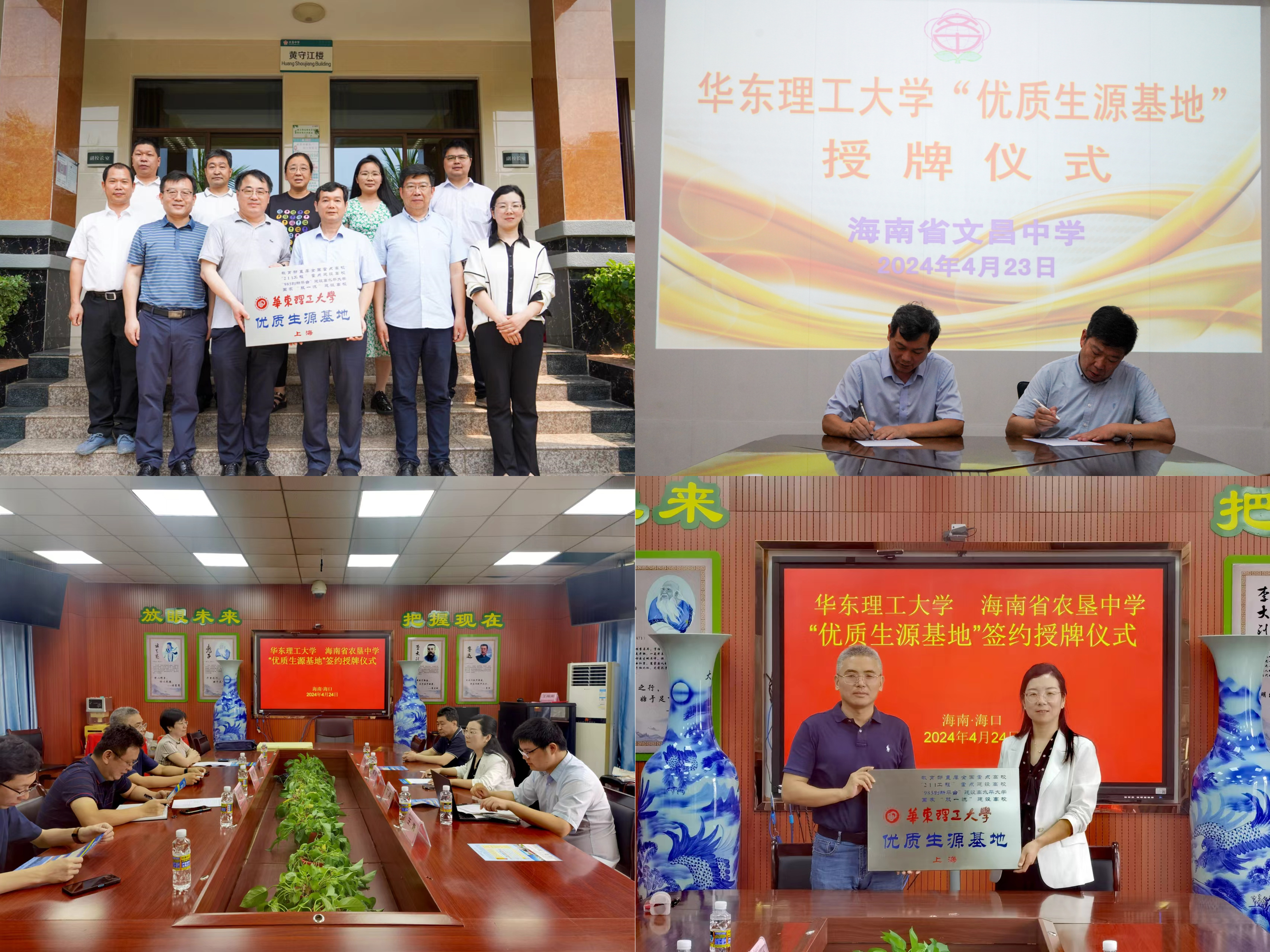 在海南省文昌中学、农垦中学,修光利和丁路分别向两个学校介绍了学校的历史沿革、学科专业特色、人才培养情况、科研实力以及面向海南省的招生政策,刘勇弟和曹娜代表学校分别与两个高中签订优质生源基地协议书,并授予“437bwin必赢国际官网优质生源基地牌匾”,双方就加强今后紧密合作、开展科普讲堂、招生宣传细节等内容进行深入交流。